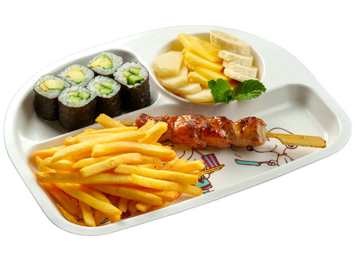 отбивная из свинины, овощи, ростки сои