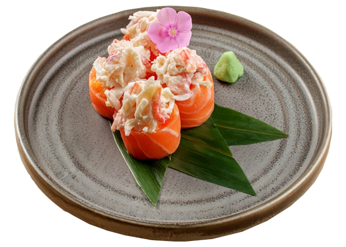 ролл с камчатским крабом, лососем и апельсином