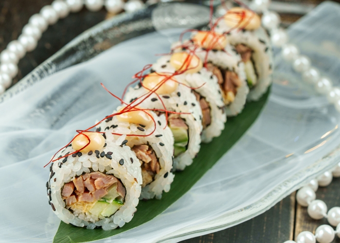 тунец, манго, авокадо, соус унаги юдзу, сливочный сыр
