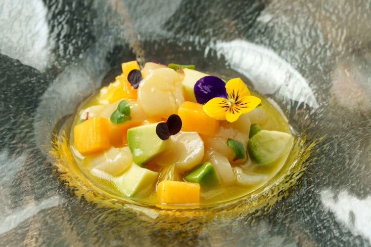 опалённый ролл с острым гребешком, угрем, лососем, сливочным сыром...
